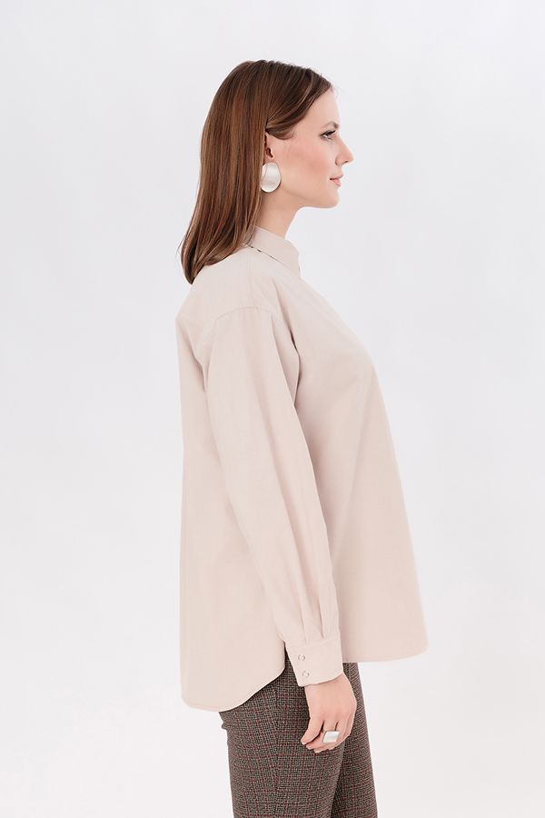 Классическая рубашка свободного силуэта из рубашечного микровельвета. Застежка на кнопки, по спинке кокетка. В боковых швах разрезы. Длина по спинке 73,5 см. Размер модели на фото: 44. Параметры модели: 90-64-97. Рост модели на фото: 175 см.