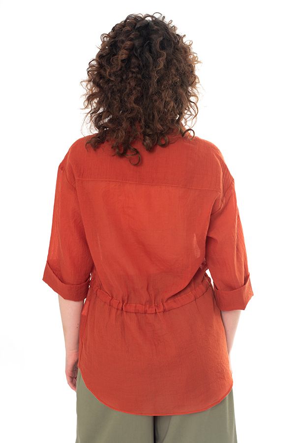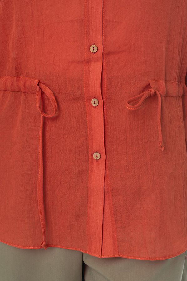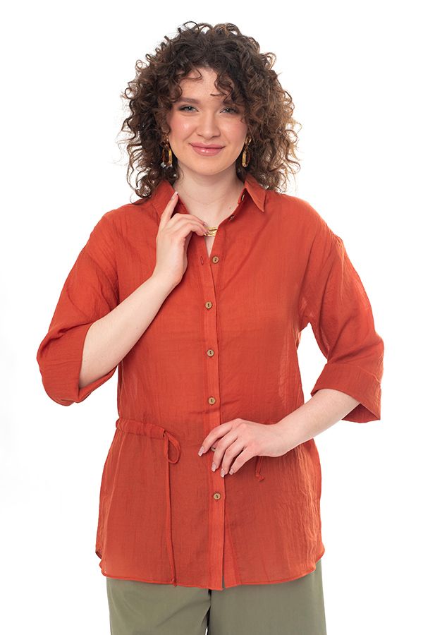 Стильная рубашка-пыльник свободного силуэта. Застежка на пуговицы, на поясе кулиска, по боковым швам разрезы. По спинке кокетка. Рукав 38 см в расправленном виде, с возможностью подворота. Длина по спинке 77 см. Размер модели на фото: 44. Параметры модели: 86-66-96. Рост модели на фото: 175 см.