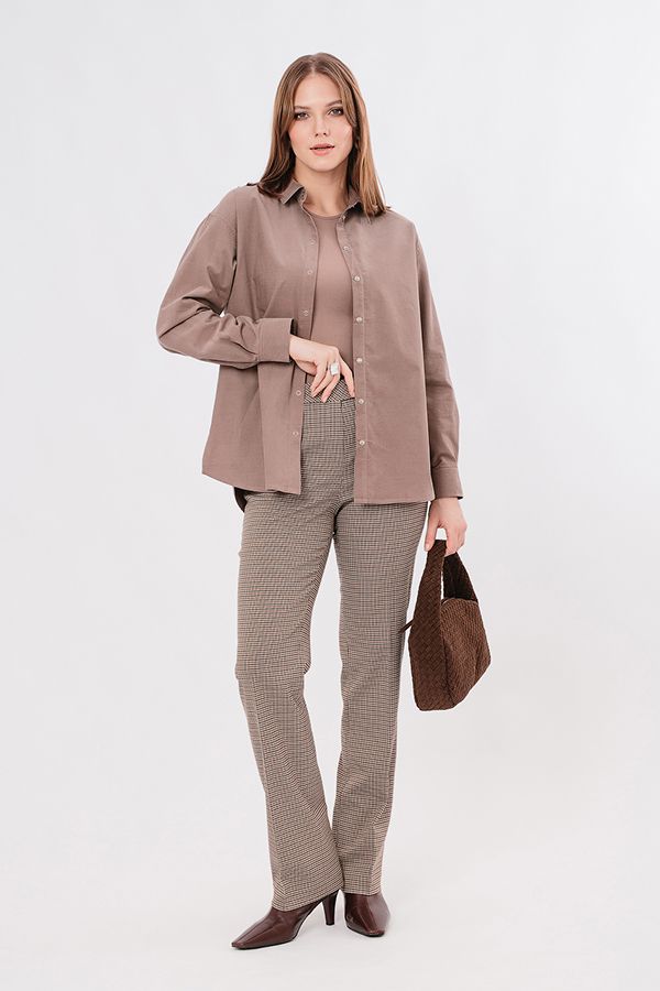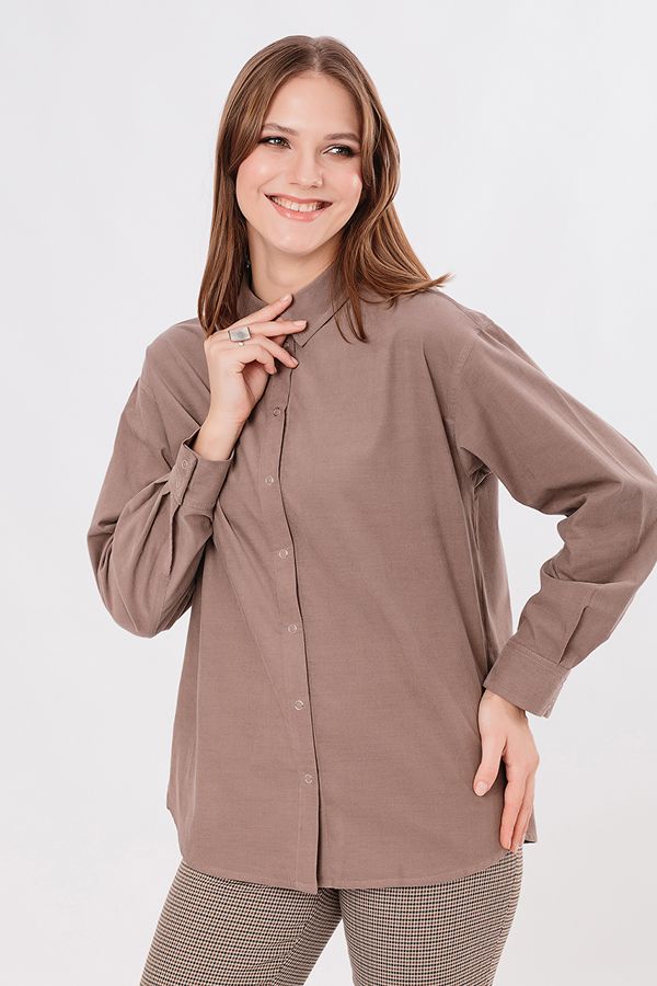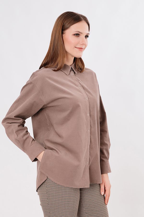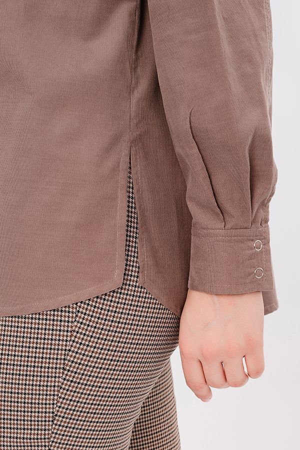 Классическая рубашка свободного силуэта из рубашечного микровельвета. Застежка на кнопки, по спинке кокетка. В боковых швах разрезы. Длина по спинке 73,5 см. Размер модели на фото: 44. Параметры модели: 90-64-97. Рост модели на фото: 175 см.