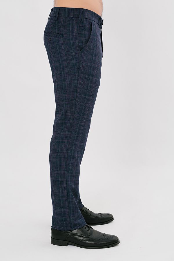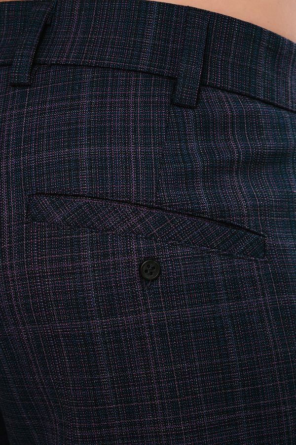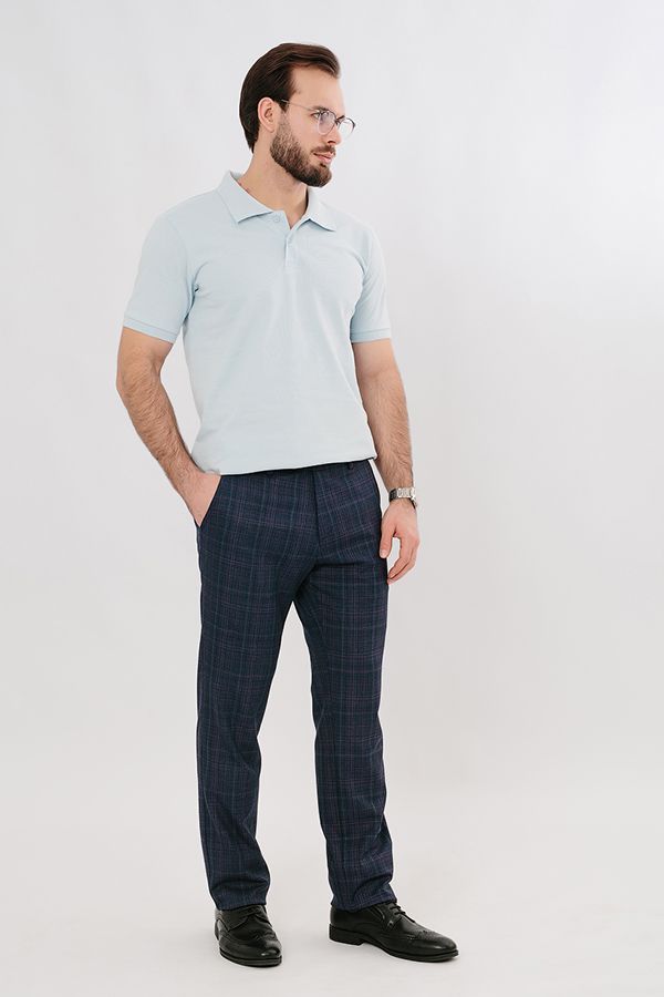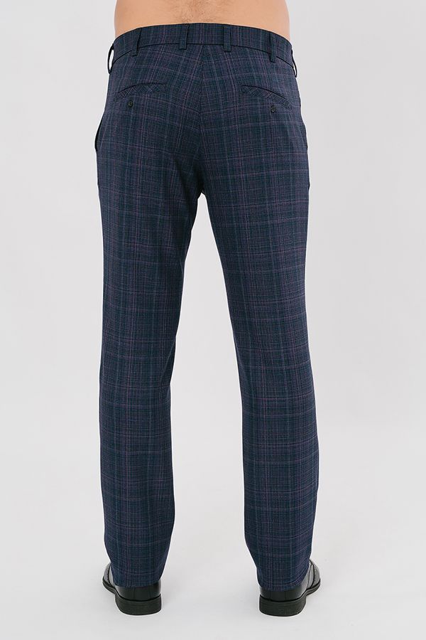 Брюки в классическом стиле. Силуэт приуженный книзу на 1,5 см. Детали спереди: застежка на молнию и пуговицу, шлевки на поясе, боковые карманы с отрезным бочком, с правой стороны карман для мелочи. Сзади два прорезных кармана в рамке, которые застегиваются на пуговицу.