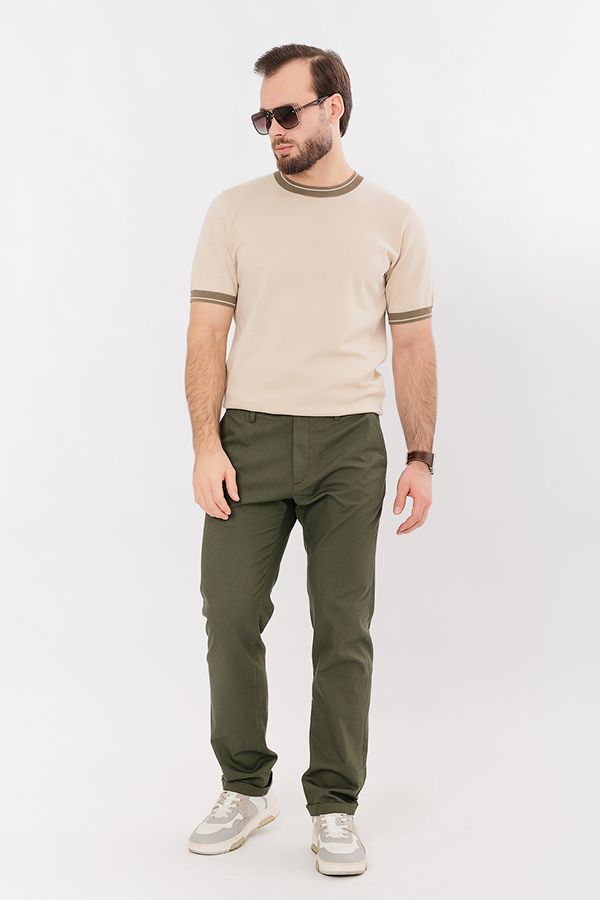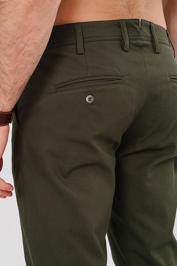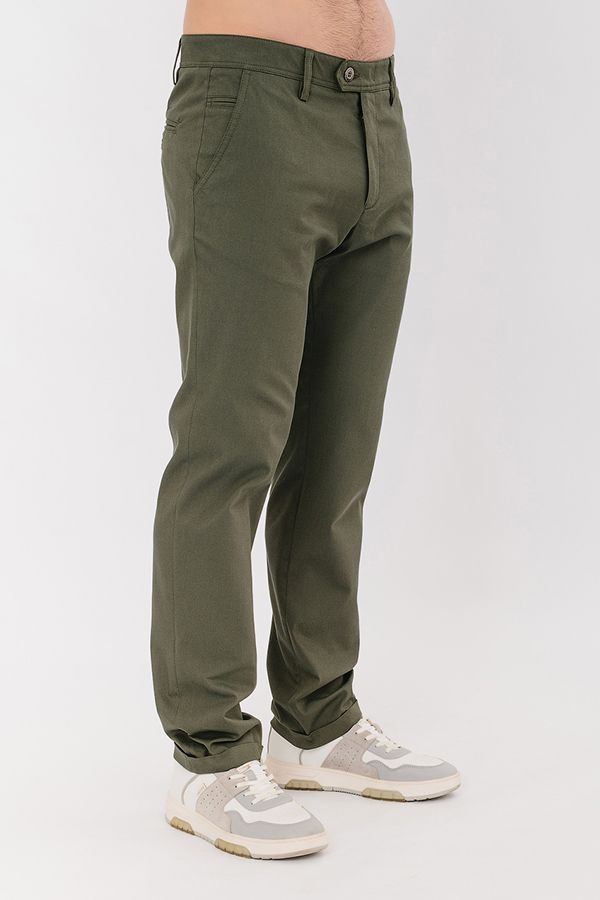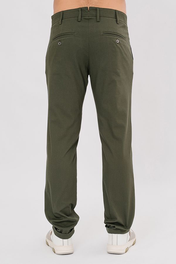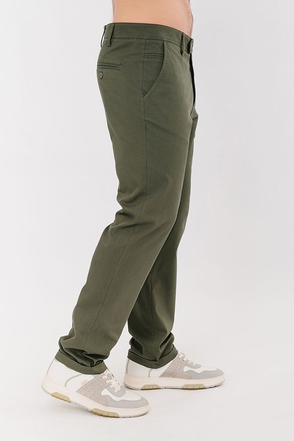 Молодежные брюки-чинос. Детали: спереди застежка на молнию и пуговицу, передние карманы размещены по диагонали, слевой стороны оригинальный карман "под мелочь". Сзади под вытачками, характерные для чинос карманы в виде узких прорезей в рамку, на пуговице. На поясе шлевки. По низу изделия отворот. Длина по внутреннему шву - 81 см. Ширина низа - 19 см. Числовые параметры соответствуют размеру 50. Размер модели на фото: 50. Параметры модели: 104-80-106. Рост модели на фото: 183 см.