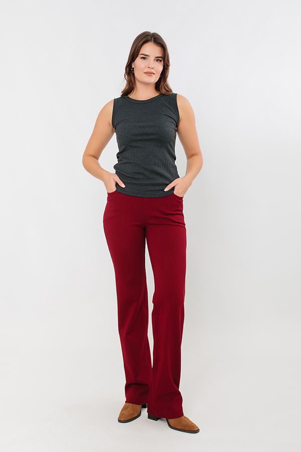 Комфортная модель брюк из трикотажного вельвета. Детали: спереди карманы с горизонтальным входом, сзади кокетка. Комбинированный пояс на фирменной резине. Длина по внутреннему шву - 87,5 см. Ширина по линии низа - 23 см. *Числовые параметры соответствуют размеру 44. Размер модели на фото: 44. Параметры модели: 86-63-94. Рост модели на фото: 173 см.