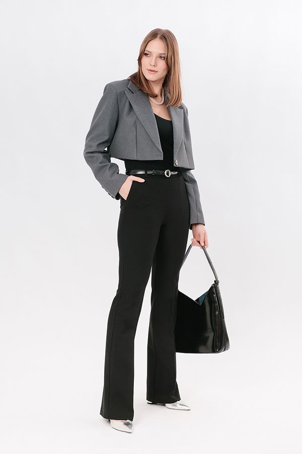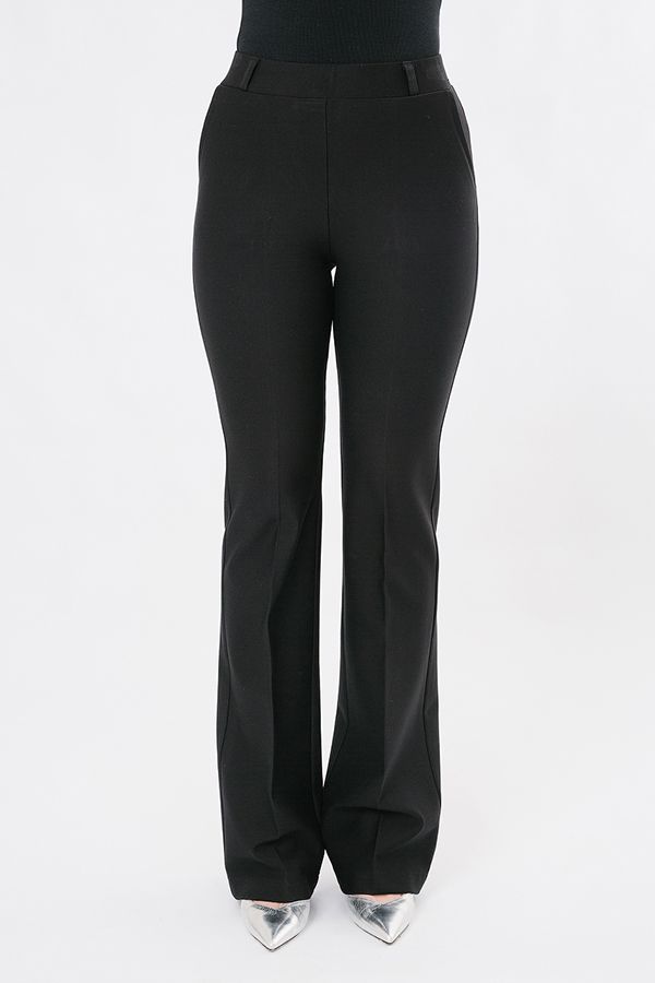 Элегантные брюки из трикотажного полотна актуального фасона. Силуэт клеш от колена.