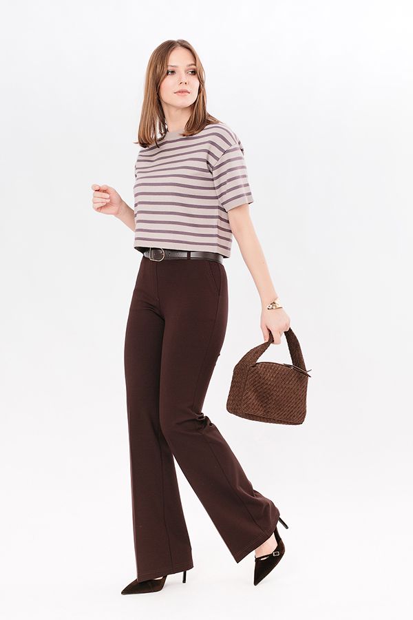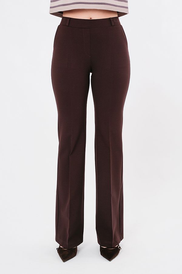 Элегантные брюки из трикотажного полотна актуального фасона. Силуэт клеш от колена.