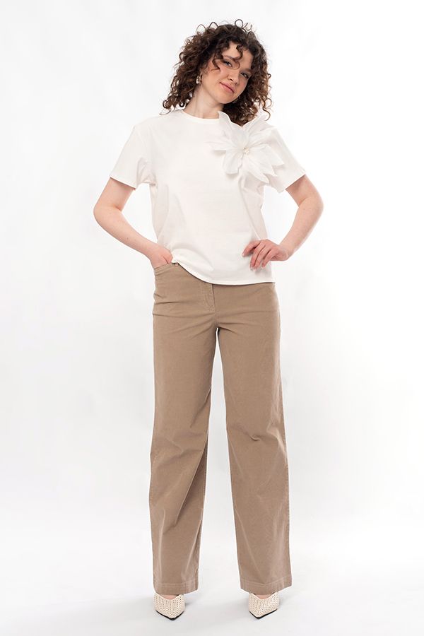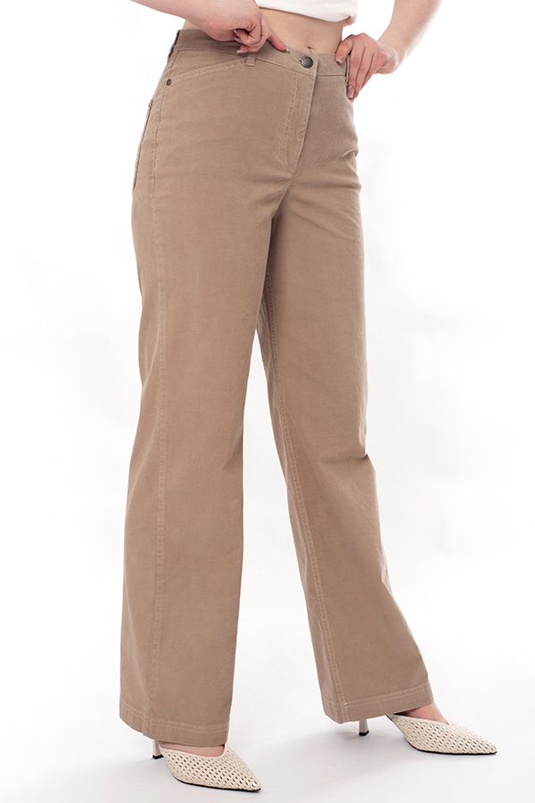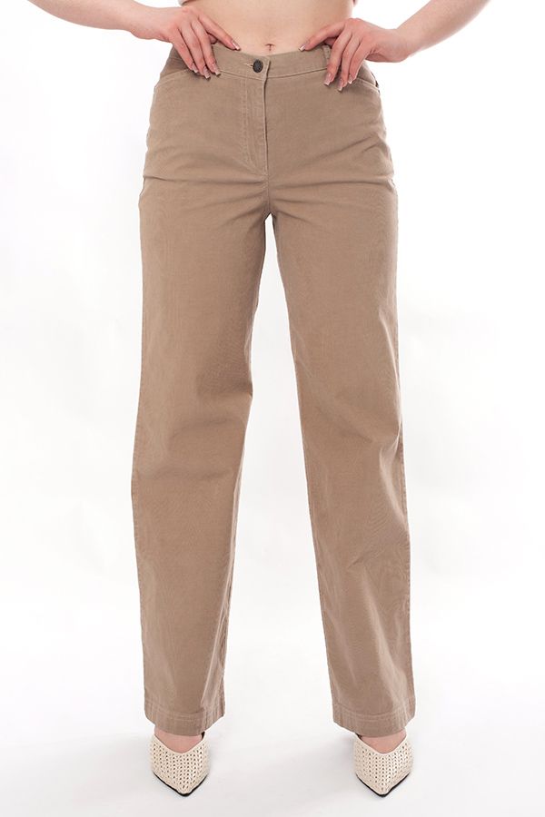 Прямые джинсы из микровельвета. Детали: спереди застежка на болт и молнию, оригинальные боковые карманы с хольнитенами, сзади под кокеткой накладные карманы с фигурной строчкой, на поясе шлевки. Длина по внутреннему шву - 82 см. Ширина по линии низа - 25,5 см. *Числовые параметры соответствуют размеру 44. Размер модели на фото: 46. Параметры модели: 86-66-96. Рост модели на фото: 175 см.
