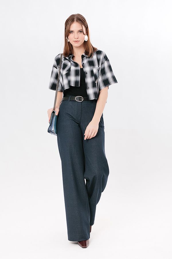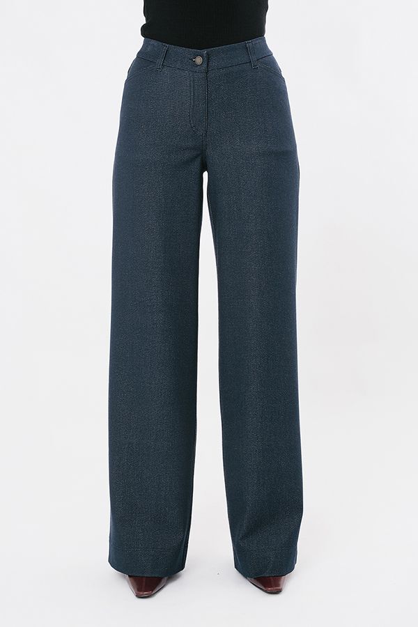 Модные широкие брюки из костюмной ткани под "джинсу". Детали: спереди застежка на молнию и болт, оригинальные боковые карманы с хольнитенами, сзади кокетка, на поясе шлевки. В поясе по спинке резина на сборке. Длина по внутреннему шву - 79 см. Ширина по линии низа - 29 см. *Числовые параметры соответствуют размеру 42. Размер модели на фото: 44. Параметры модели: 90-64-97. Рост модели на фото: 175 см.