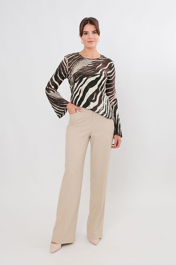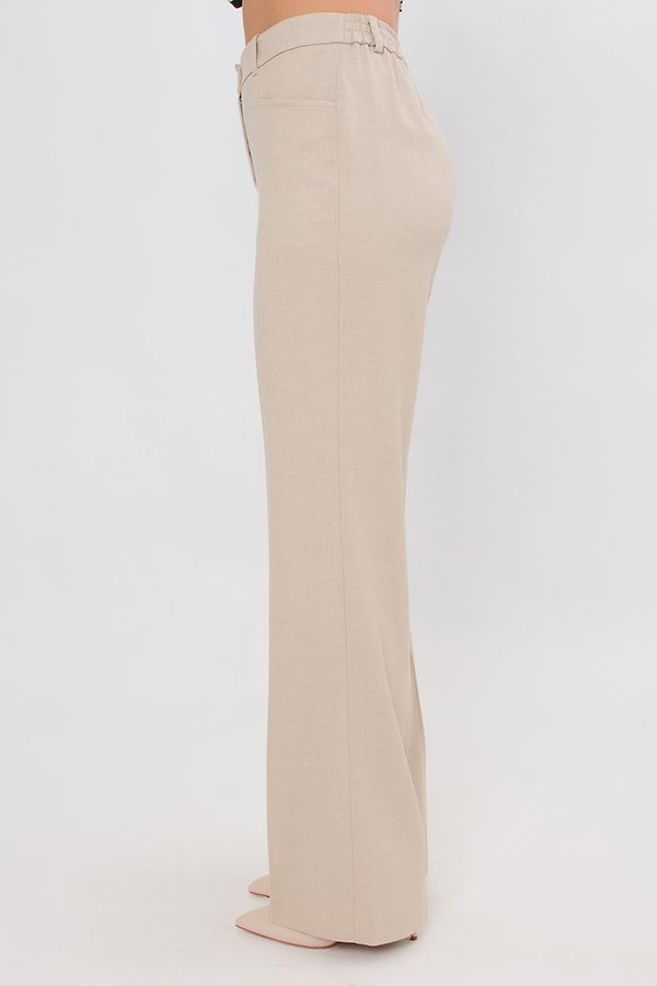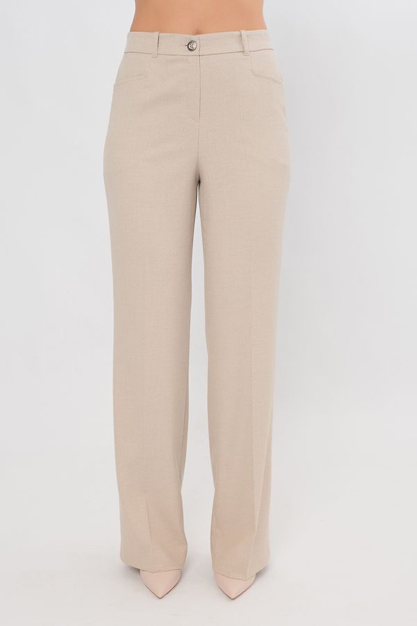 Элегантные брюки молочного цвета в полной длине со стрелками. Детали: спереди застежка на молнию и пуговицу, оригинальные карманы с горизонтальным входом, по спинке в поясе резина на сборке, на поясе шлевки. Длина по внутреннему шву - 85 см. Ширина по линии низа: 26 см. *Числовые параметры соответствуют размеру 44. Размер модели на фото: 44. Параметры модели: 86-63-94. Рост модели на фото: 173 см.