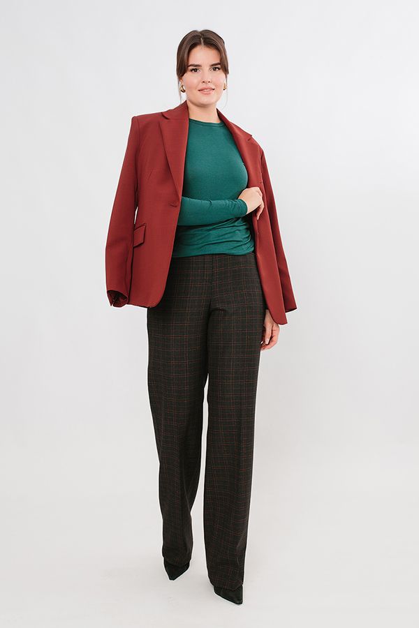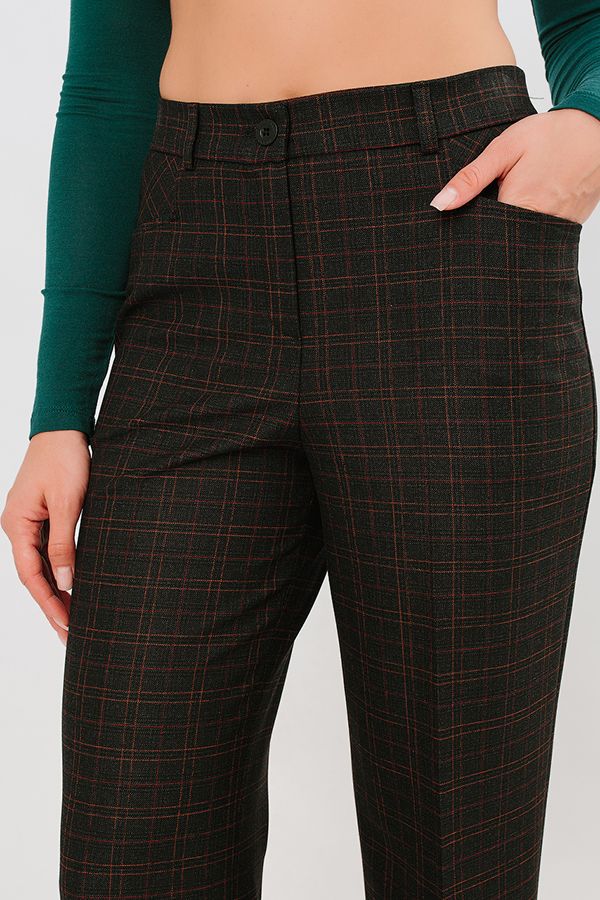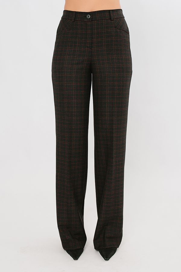 Элегантные брюки в полной длине со стрелками из костюмной ткани в клетку. Детали: спереди застежка на молнию и пуговицу, оригинальные карманы с горизонтальным входом, по спинке в поясе резина на сборке , на поясе шлевки. Длина по внутреннему шву - 87 см. Ширина по линии низа: 25,5 см. *Числовые параметры соответствуют размеру 44. Размер модели на фото: 44. Параметры модели: 86-63-94. Рост модели на фото: 173 см.