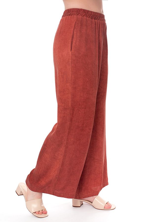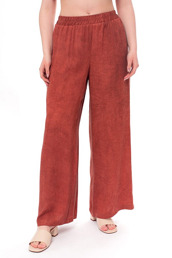 Широкие свободные летние брюки из вискозы. Детали: карманы с вертикальным входом в боковом шве. В поясе резина на сборке. Длина по внутреннему шву - 80 см. Ширина по линии низа: 34 см. *Числовые параметры соответствуют размеру 44. Размер модели на фото: 44. Параметры модели: 86-66-96. Рост модели на фото: 175 см.
