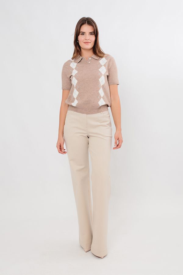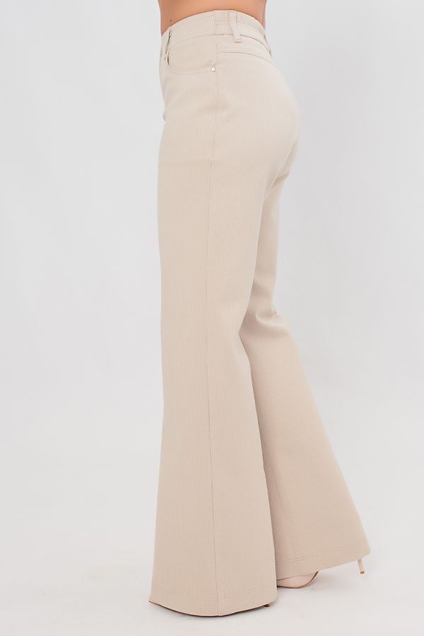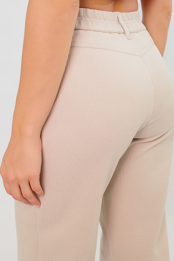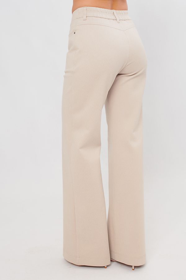 Современные брюки из теплого трикотажного полотна под "вельвет". Модный силуэт-клеш от середины бедра. Детали: спереди застежка на молнию и пуговицу, карманы с горизонтальным входом оформлены хольнитенами. Фигурный пояс со шлевками, по спинке пояса резина на сборке. Длина по внутреннему шву-89 см. Ширина низа- 29,5 см. "числовые параметры соответствуют размеру 44. размер модели на фото 44. Параметры модели: 86-63-94. Рост модели на фото: 173 см.