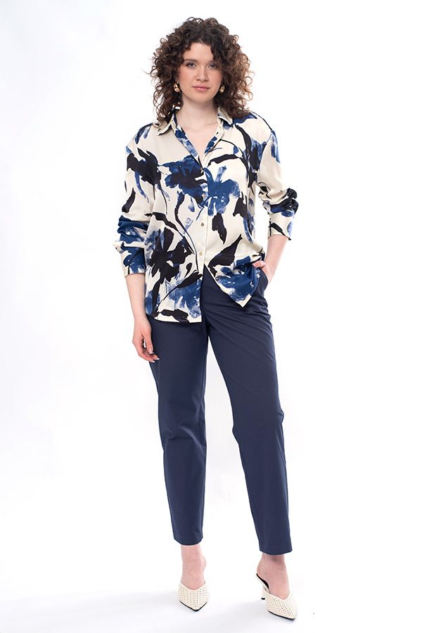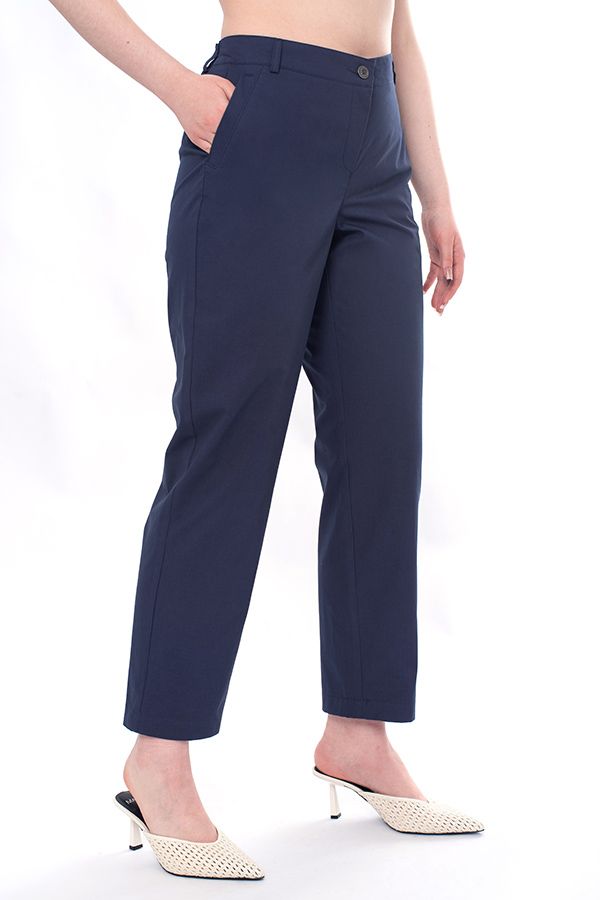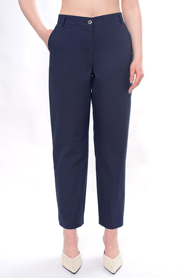 Летние брюки из 100% хлопка. Детали: спереди застежка на молнию и фирменную пуговицу, боковые карманы с оригинальной отделкой, сзади имитация карманов в рамке. В пояс , по спинке, вставлена резина, шлевки на поясе. Длина по внутреннему шву - 73,5 см. Ширина низа - 19 см. *Числовые параметры соответствуют размеру 44. Размер модели на фото: 46. Параметры модели: 86-66-96. Рост модели на фото: 175 см.