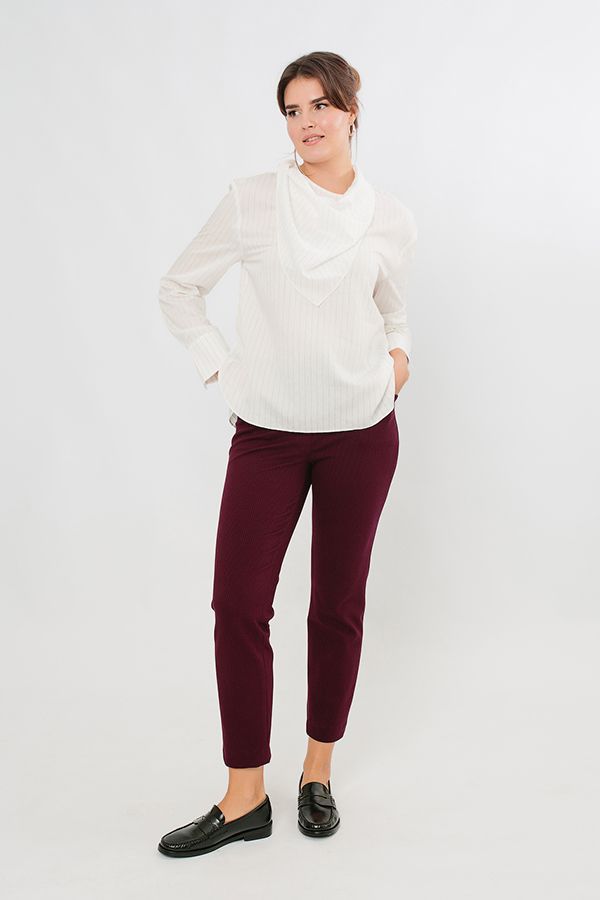 Комфортные брюки из трикотажного вельвета. Спереди застежка на молнию и фирменную пуговицу, боковые карманы с оригинальной отделкой, широкий пояс со шлевками. В поясе резина на сборке. Длина по внутреннему шву - 68 м. Ширина по линии низа - 16 см.*Числовые параметры соответствуют размеру 44. Размер модели на фото:44. Параметры модели: 86-63-94. Рост модели на фото: 173 см.