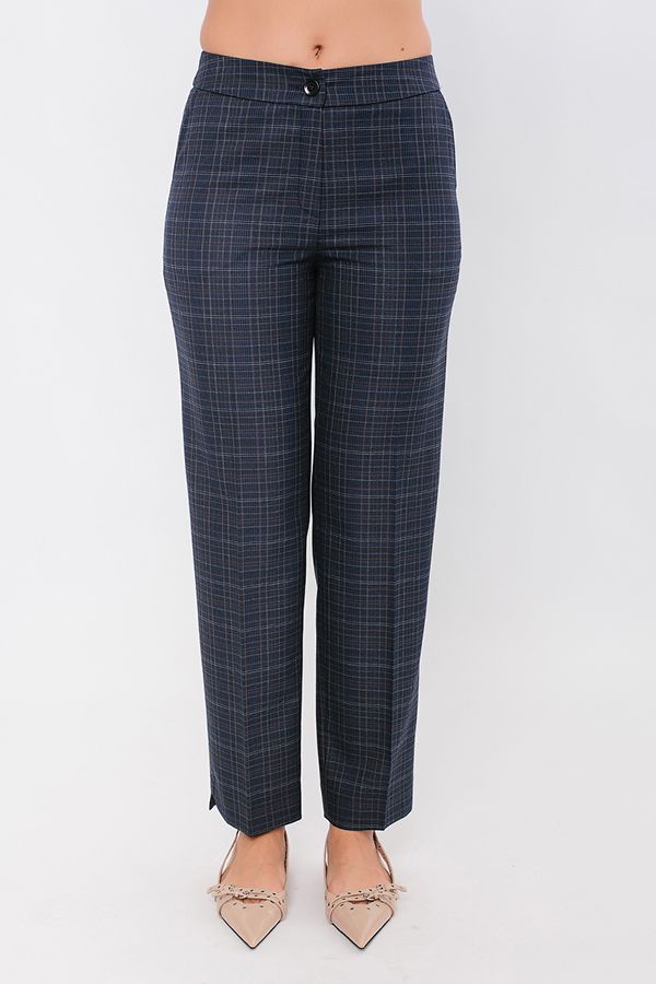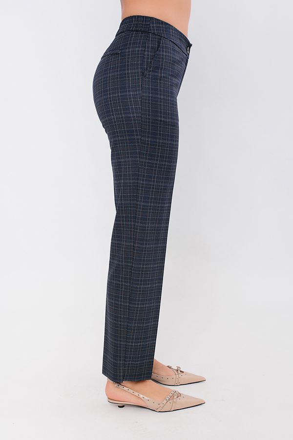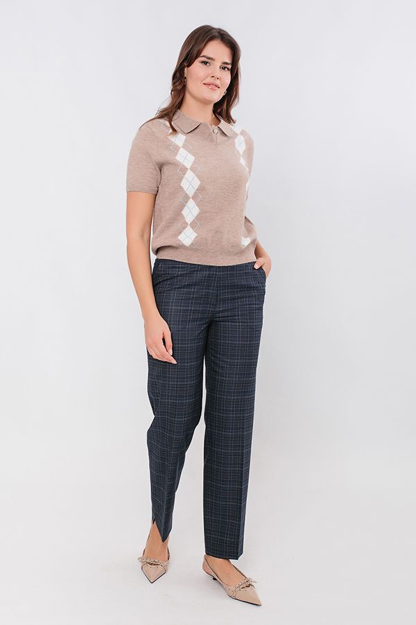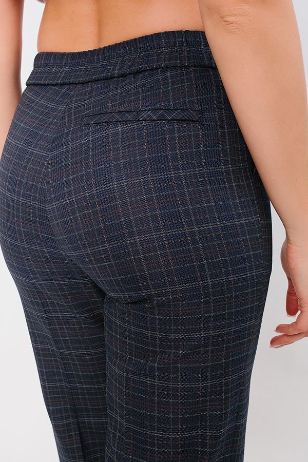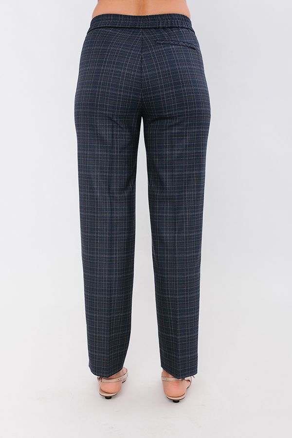 Модель брюк из костюмной ткани в городском стиле. Спереди застежка на молнию и пуговицу, боковые карманы, сзади по правой стороне листочка с имитацией кармана. По передней половинке фигурный пояс, по задней половинке в поясе эластичная лента на сборке. По низу изделия, в боковом шве разрез 3 см. Длина по внутреннему шву - 74 см. Ширина низа - 19 см. *Числовые параметры соответствуют размеру 44. Размер модели на фото: 44. Параы модели: 86-63-94. Рост модели на фото: 173 см.