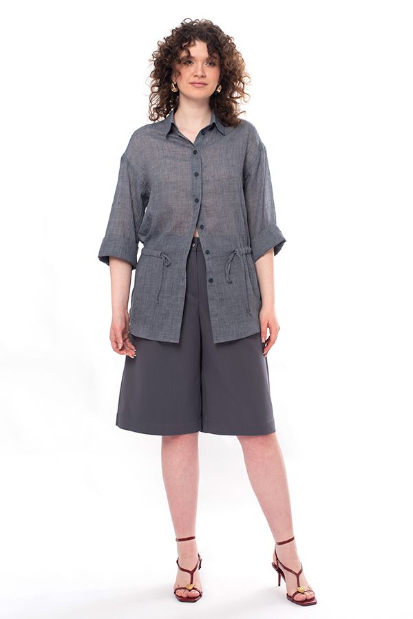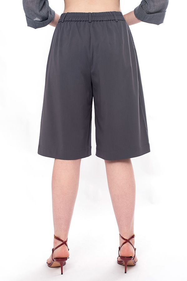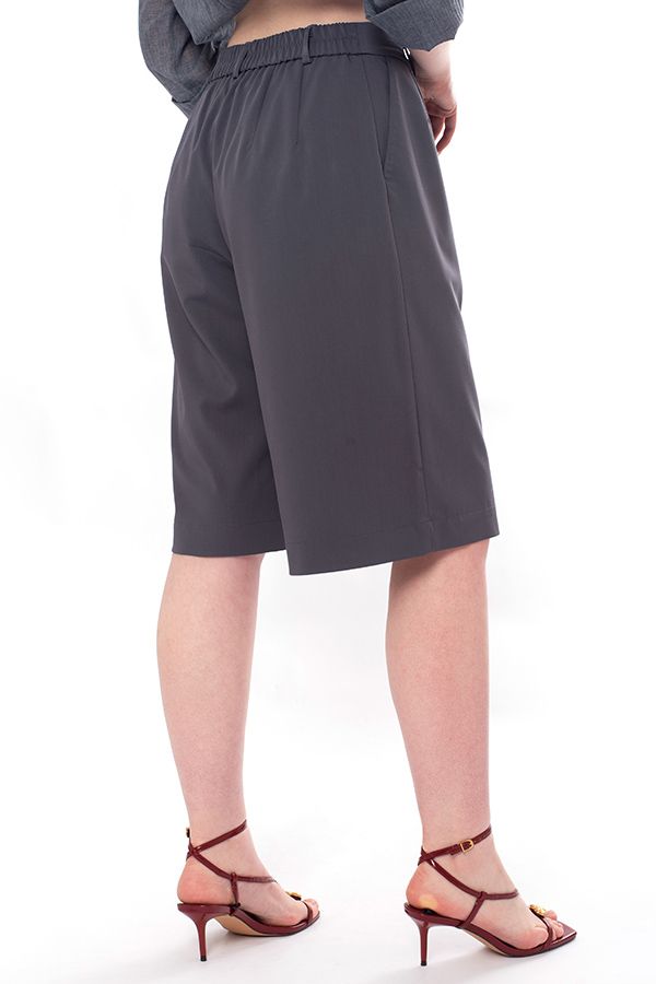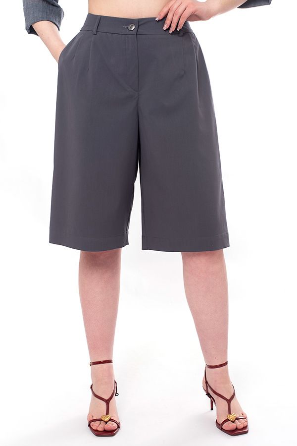 Шорты из легкой костюмной ткани. Прекрасный вариант для офиса в жаркий летний день. Детали: спереди застежка на молнию и пуговицу, две застроченные вытачки, боковые карманы, сзади две вытачки, по спинке изделия в поясе резина на сборке, на поясе шлевки. Длина по внутреннему шву - 34 см. Ширина низа - 33 см. *Числовые параметры соответствуют размеру 42. Размер модели на фото: 46 Параметры модели: 86-66-96. Рост модели на фото: 175 см.