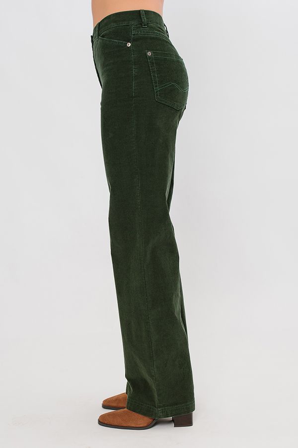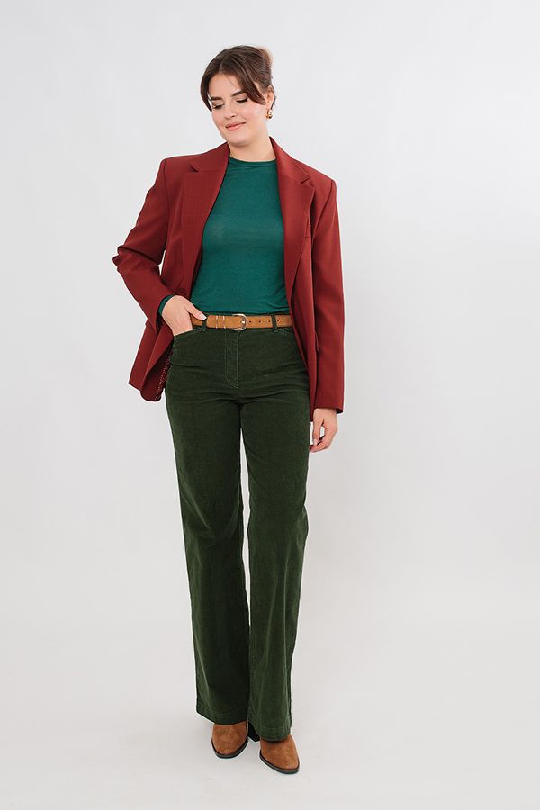 Прямые джинсы из микровельвета. Детали: спереди застежка на болт и молнию, оригинальные боковые карманы с хольнитенами, сзади под кокеткой накладные карманы с фигурной строчкой, на поясе шлевки. Длина по внутреннему шву - 82 см. Ширина по линии низа - 25,5 см. *Числовые параметры соответствуют размеру 44. Размер модели на фото: 44. Параметры модели: 86-63-94. Рост модели на фото: 173 см.