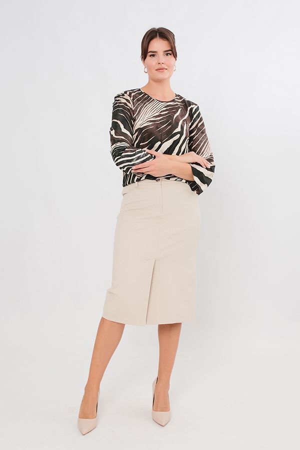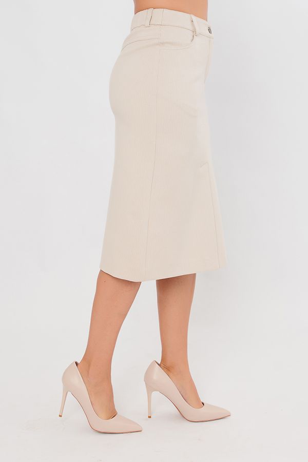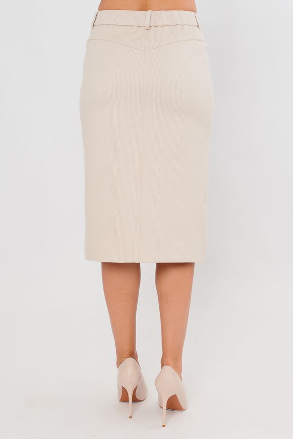 Современная молодежная юбка из трикотажного полотна под "вельвет". Детали: Спереди застежка на молнию и пуговицу, карманы с горизонтальным входом, в среднем шве шлица. Сзади кокетка с двойной отстрочкой. В поясе по спинке резина, на поясе шлевки. Длина изделия 68 см. Размер модели на фото: 44. Параметры модели: 86-63-94. Рост модели на фото: 173 см.